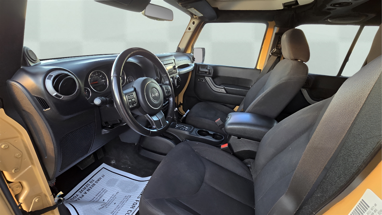 This 2013 Jeep Wrangler Unlimited Sport 4WD offers classic Jeep capability with a clean, rugged look and strong off-road performance. Equipped with a 3.6L Pentastar V6 engine and a 5-speed automatic transmission, this Wrangler delivers reliability, power, and the versatility Jeep is known for. Finished in Dune exterior over a Black interior, this Unlimited Sport includes key package upgrades such as the 24S Preferred Package, Connectivity Group, and Max Tow Package.