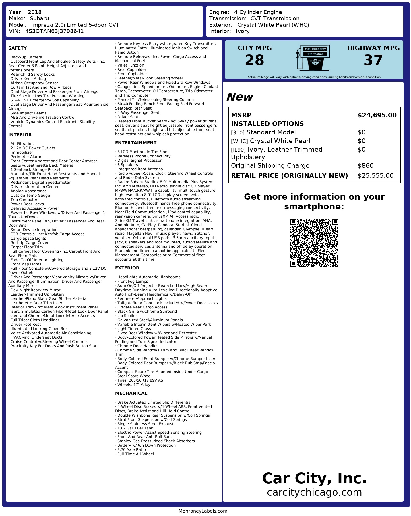 Prices exclude tax, title, license, documentation fees, and optional accessories. Vehicle availability and pricing subject to change. Contact Car City Inc. for complete details.